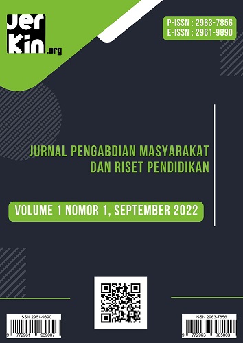Jurnal Pengabdian Masyarakat dan Riset Pendidikan is a journal on Lembaga Penelitian dan Pengabdian Masyarakat, Universitas Pahlawan Tuanku Tambusai. The journal is registered with E-ISSN: 2961-9890 and P-ISSN: 2963-7856. Jurnal Pengabdian Masyarakat dan Riset Pendidikan is published four times a year in September, December, March and June. Jurnal Pengabdian Masyarakat dan Riset Pendidikan receives 50 articles per issue. This journal contains articles on community service with the scope of Training and Marketing that are used for community empowerment, SMEs and the surrounding community, Community Empowerment, Social Access, Community Service Activities by Lecturers or Students, Empowerment of Outermost Area Communities, Education for Sustainable Development; Community Empowerment Program; Designing and Reaching Appropriate Technology for the Community. The journal also facilitate and promote the inquiry into and disseminations of research results on primary education, secondary education, higher education, teacher education, special education, adult education, non-formal education, and any new development and advancement in the field education. The scope of our Journal Includes:
